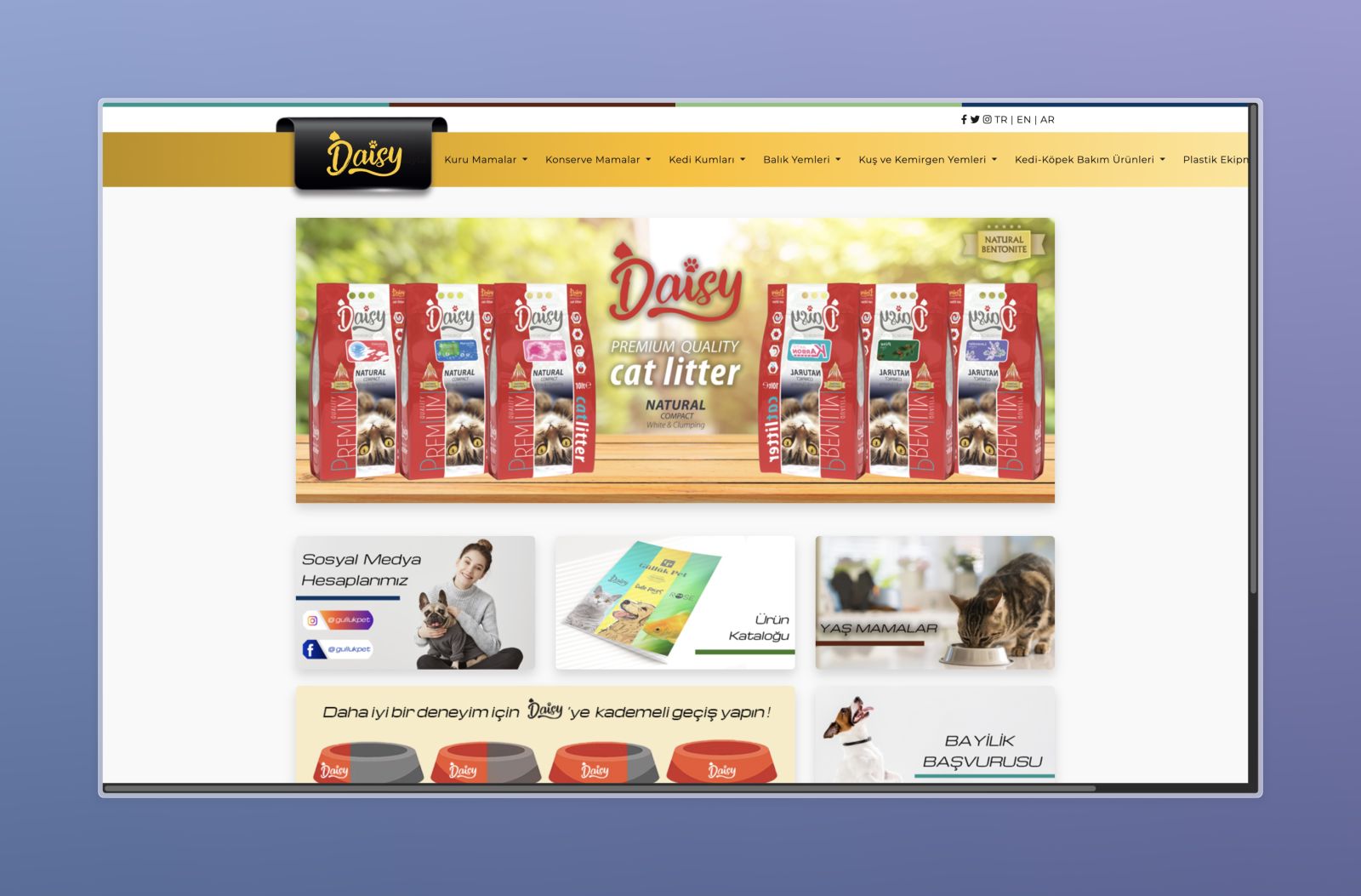 Daisy Pet Food için geliştirilen kurumsal web sitesi, markanın premium ürün gamını dijital ortamda güçlü ve etkili bir şekilde sunmak üzere tasarlanmıştır.