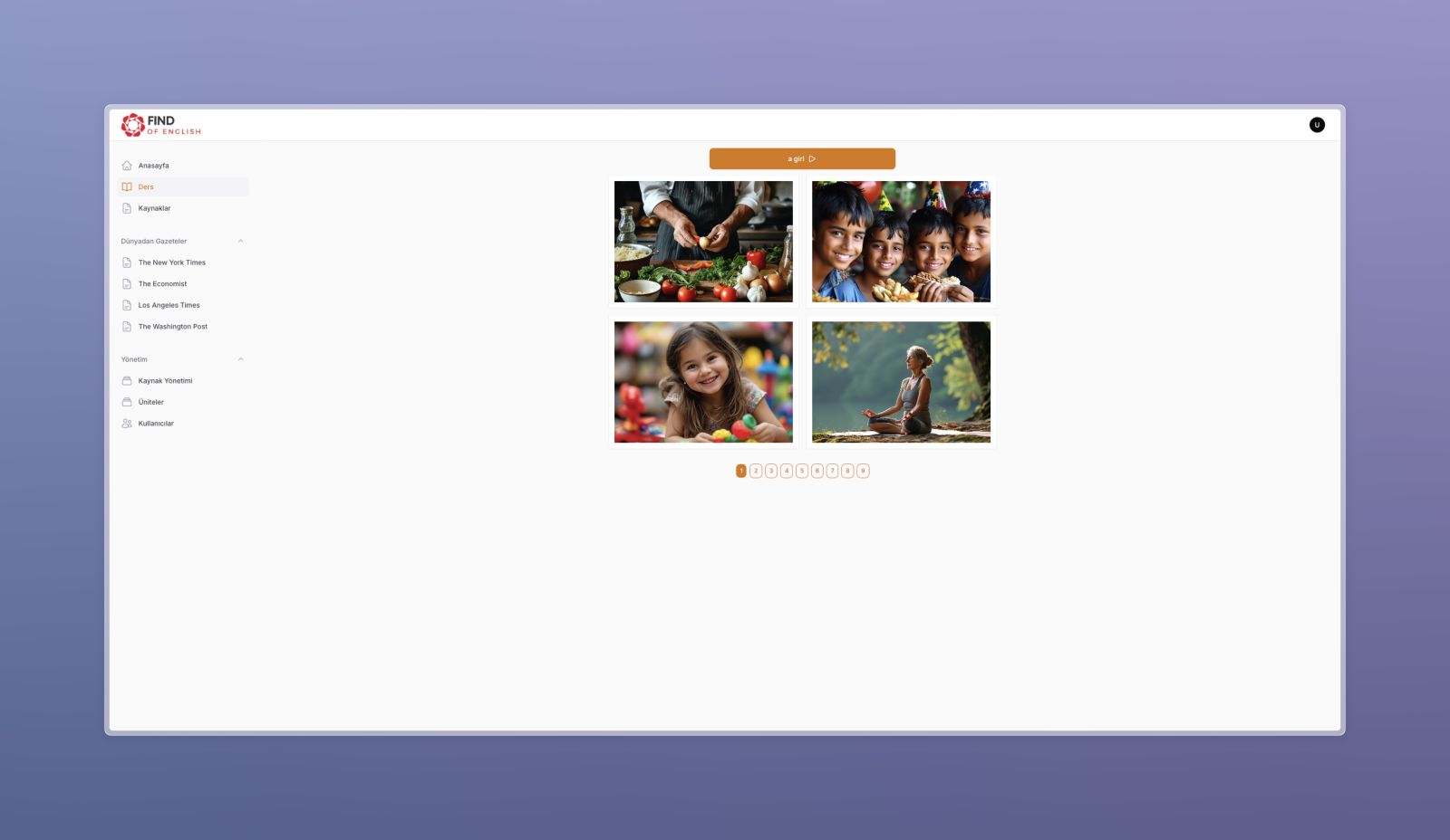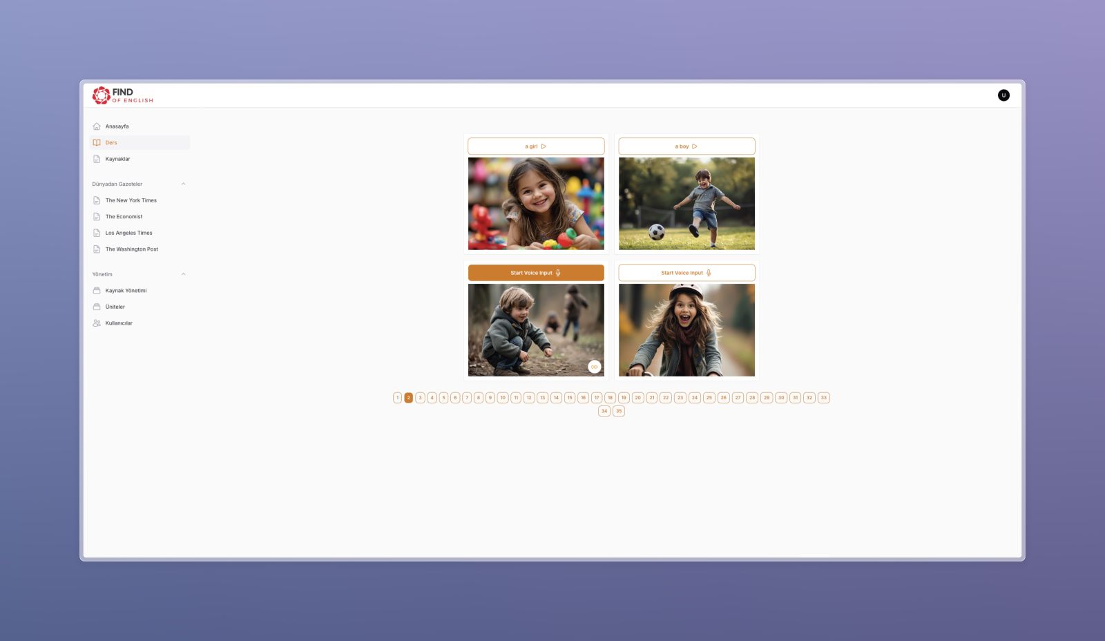Find of English için geliştirdiğimiz bu proje, kullanıcıların İngilizce öğrenme süreçlerini hızlandırmak ve kalıcı hale getirmek amacıyla tasarlanmış kapsamlı bir dijital eğitim platformudur.