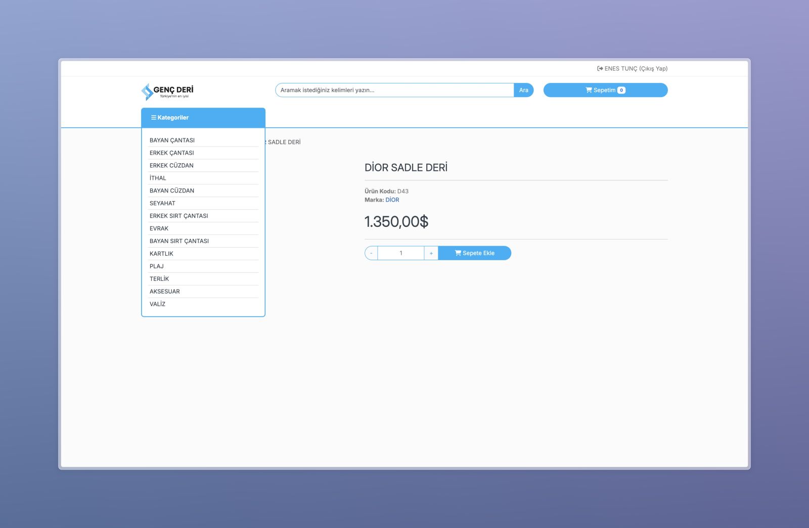 Genç Deri için geliştirdiğimiz bu proje, firmanın toptan satış süreçlerini dijitalleştiren ve mevcut LOGO ERP altyapısı ile entegre çalışan kapsamlı bir B2B ticaret platformudur.