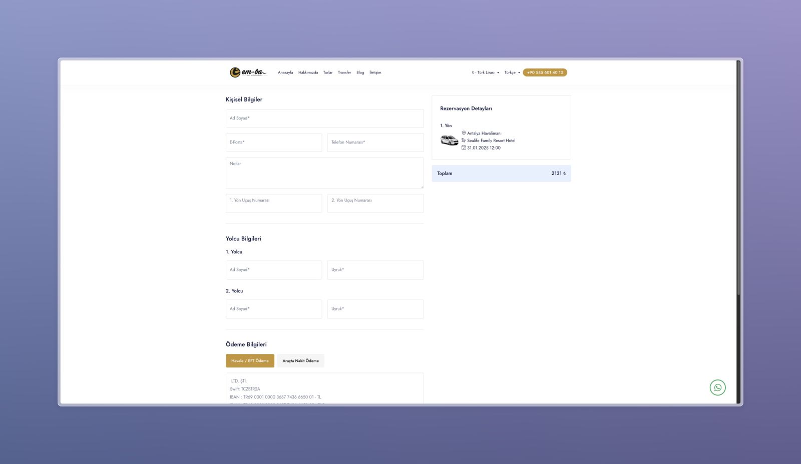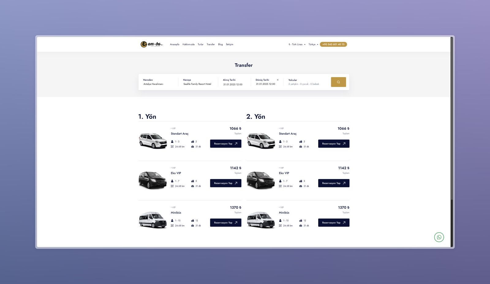 Havalimanı ve özel transfer hizmetlerinizi planlayın, araç ve kapasite bazlı rezervasyonları kolayca yönetin.
