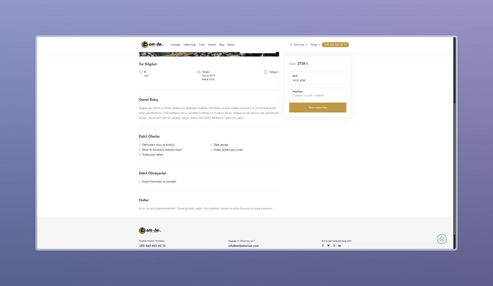 Performans, güvenlik ve kullanıcı deneyimi odaklı altyapısı sayesinde, turizm sektöründe sürdürülebilir bir dijital dönüşüm sağlar.